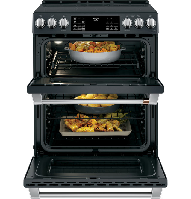 This is the ultimate in convenient cooking features. You’ll love the powerful 11″ induction element, which boils water quickly or maintains exact temperatures for perfect melting and simmering. No-Preheat Air Fry lets you enjoy healthier, crispier versions of your favorite foods in less time, while two independent ovens offer the flexibility to prepare multiple dishes at once