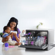 Use SmartHQ™ to simplify bottle cleaning and sanitization. This dishwasher’s Baby Care Cycle eliminates 99.999% of bacteria from bottles, pumps, and baby essentials, for peace of mind.