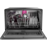 This dishwasher has a big capacity that fits 6 place settings, 11” plates, or 24 bar glasses. Perfect for hosting or daily cleanups.
