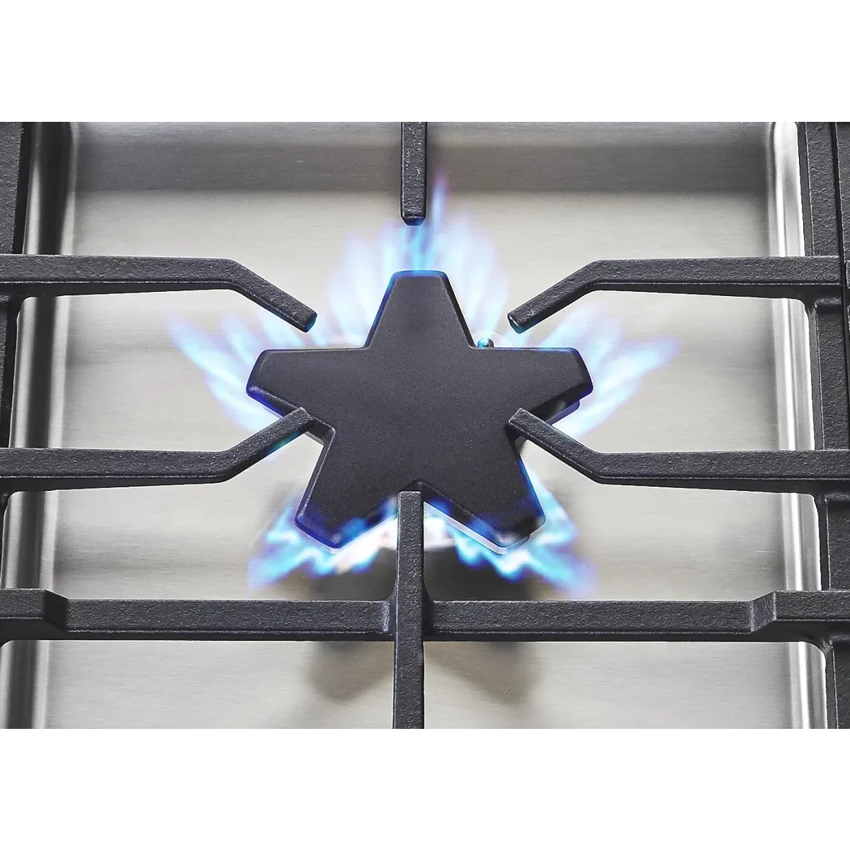 Patented Star® Burner’s unique five-point design offers more ports and more flame distribution that a round burner - Continuous Grates